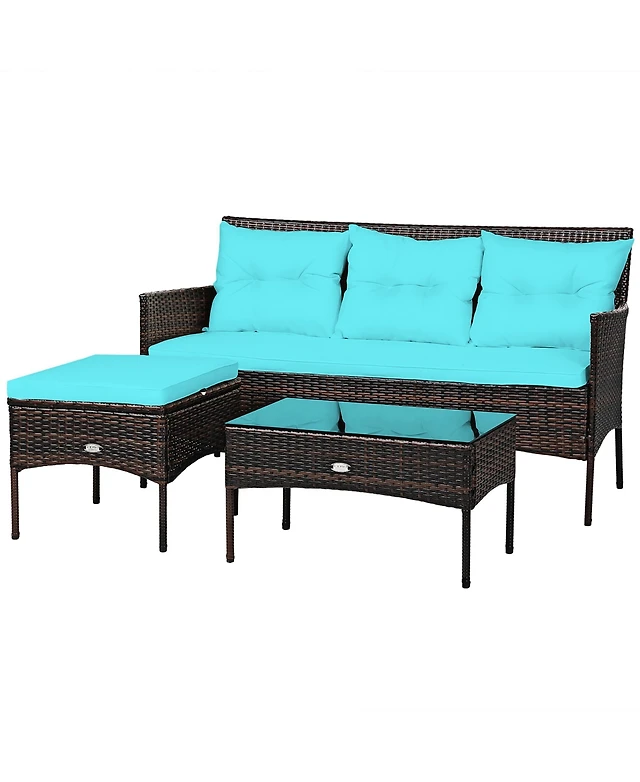 Gymax 3 Piece Patio Rattan Furniture Set Conversation Sofa w/ Cushions