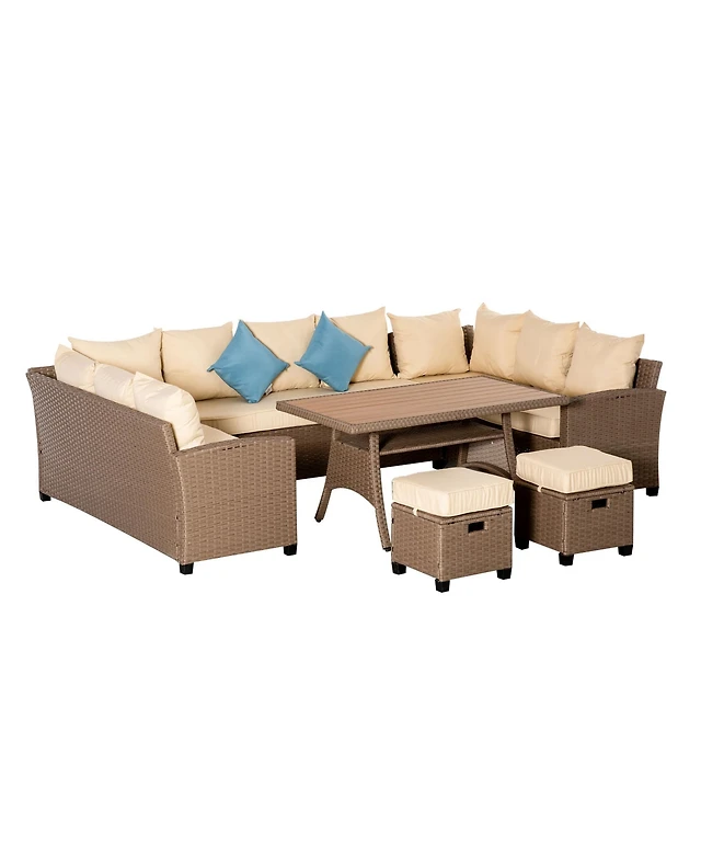 Outsunny Patio Furniture Sectional Sofa w/ Ottomans & Table,