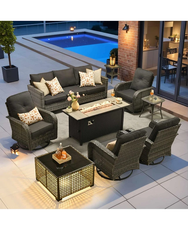 8PCS Patio Rattan Furniture Set Solid Wood Leg Cushioned Sofa Garden Lawn