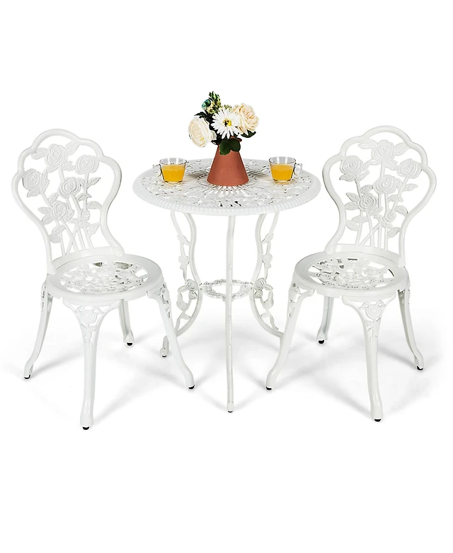 3PCS Cast Aluminum Patio Bistro Furniture Set Rose Design Outdoor