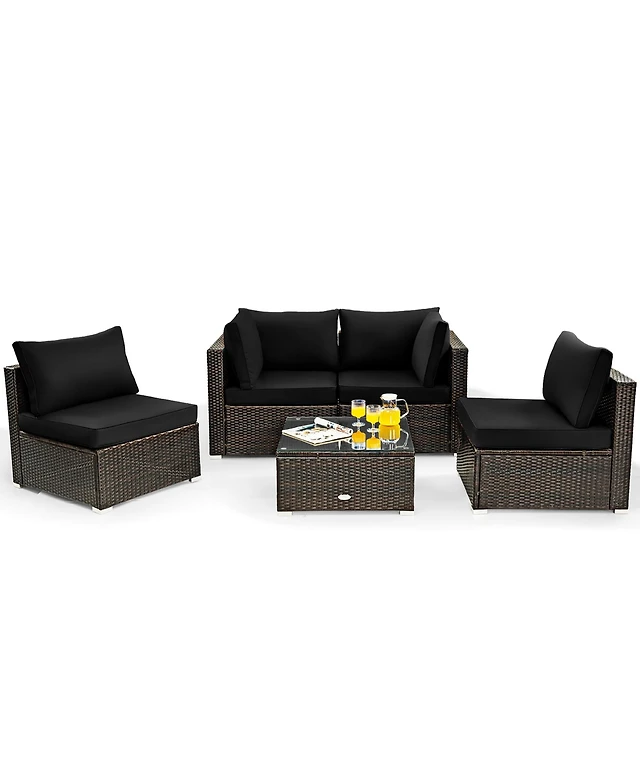 6PCS Patio Rattan Furniture Set Cushioned Sofa Coffee Table Garden