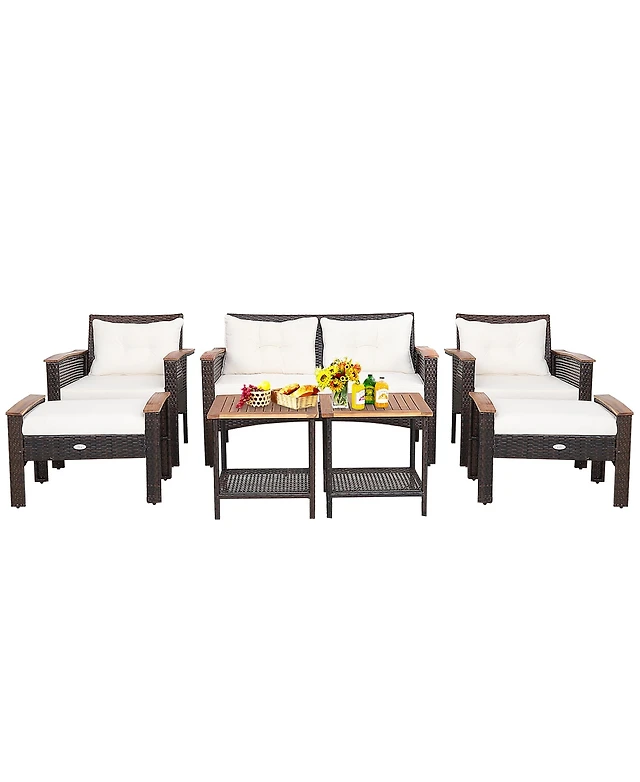 Gymax 8PCS Patio Rattan Conversation Furniture Set Outdoor w/ Cushion