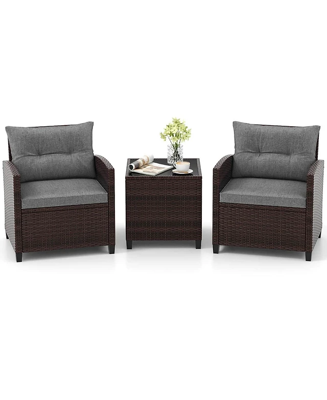 Gymax 3 Piece Outdoor Patio Rattan Conversation Furniture Set Yard w/ Cushions & Coffee Table