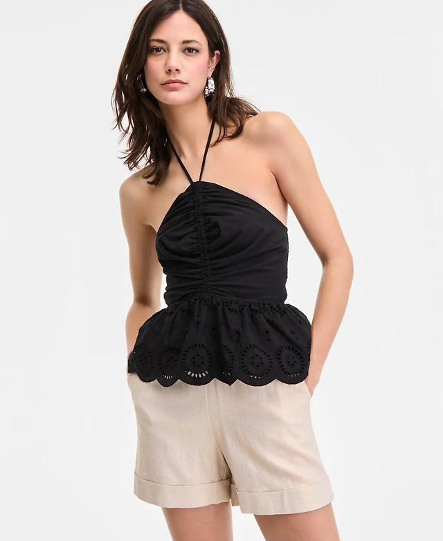 I.n.c. International Concepts Women's Cotton Scalloped Eyelet Halter Top, Exclusively at Macy's