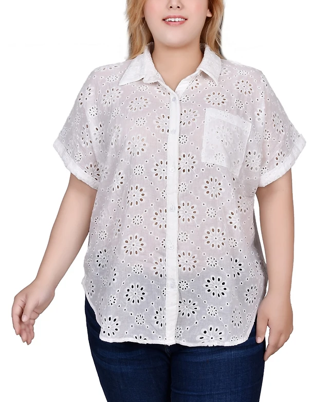 Ny Collection Plus Size Smocked Hem Knit Eyelet Top
