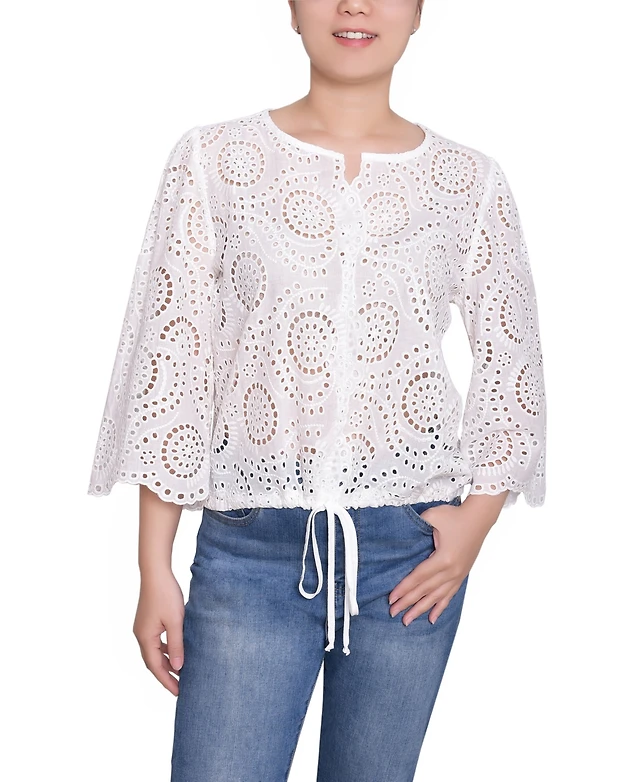 Ny Collection Petite 3/4 Sleeve Eyelet Top