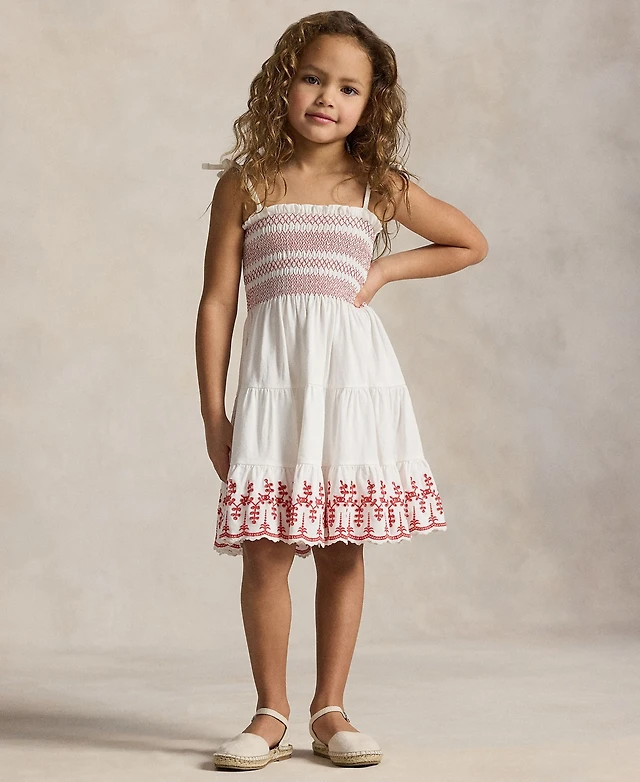 Polo Ralph Lauren Toddler and Little Girls Smocked Eyelet Jersey Dress