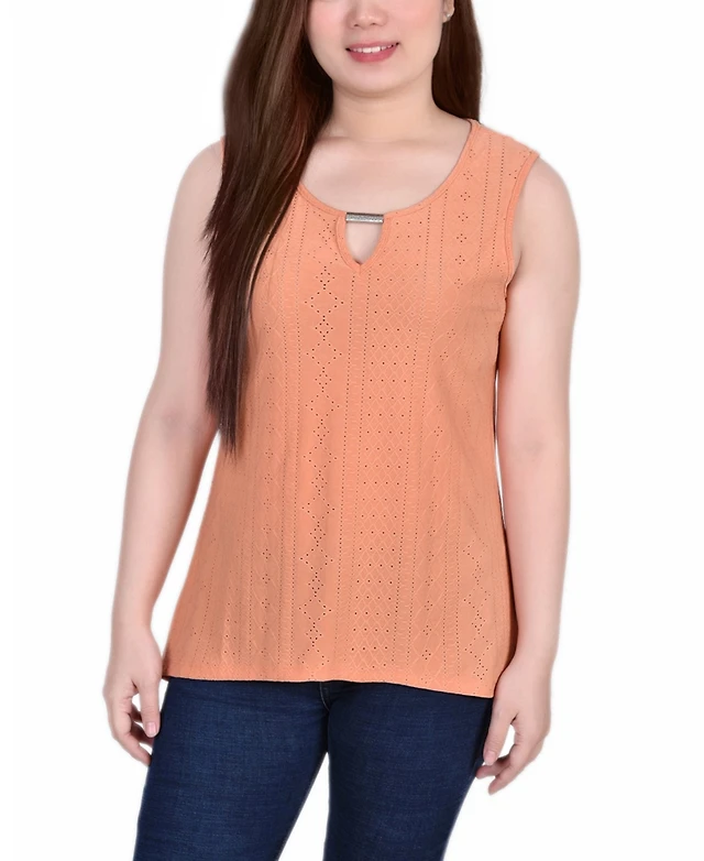 Women's Sleeveless Knit Eyelet Top with Hardware