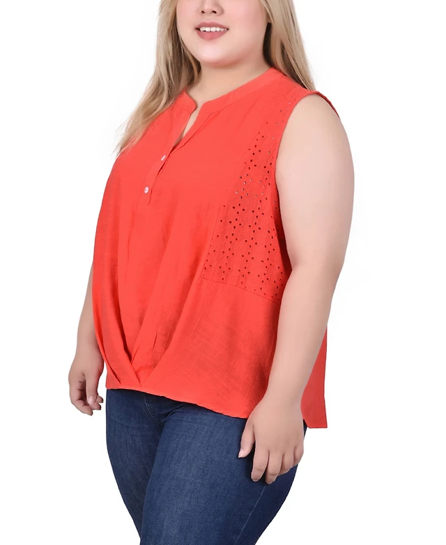 Ny Collection Women's Sleeveless Blouse with Eyelet Insets