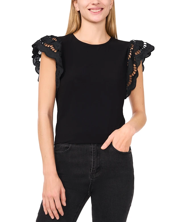 Style & Co Petite Eyelet Embroidered Cotton Flutter-Sleeve Top, Exclusively at Macy's