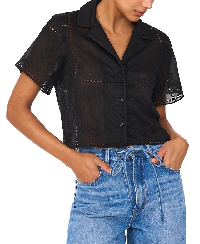 Style & Co Petite Eyelet Embroidered Cotton Button-Front Blouse, Macy's Exclusive
