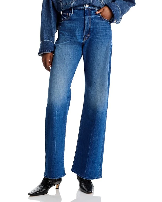 Modenaire Women's Wide-Leg Button-Fly Cuffed Patch Pocket Jeans