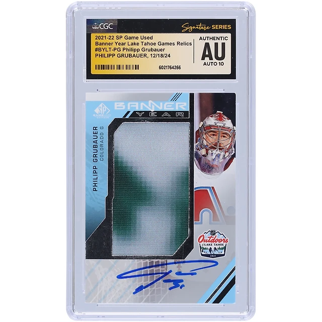 Philipp Grubauer Colorado Avalanche Autographed 2021-22 Upper Deck SP Game Used 2 Color Banner Year Lake Tahoe Games Relics #BYLT-PG CGC Fanatics Witnessed Authenticated Auto 10 Card