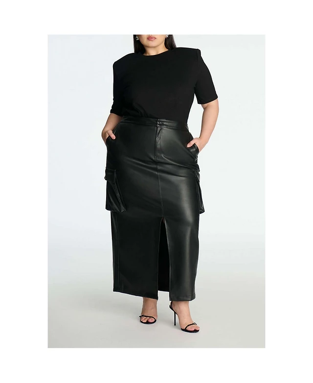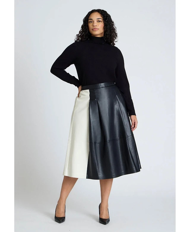 Eloquii Women's Plus Mixed Media Pleated Skirt