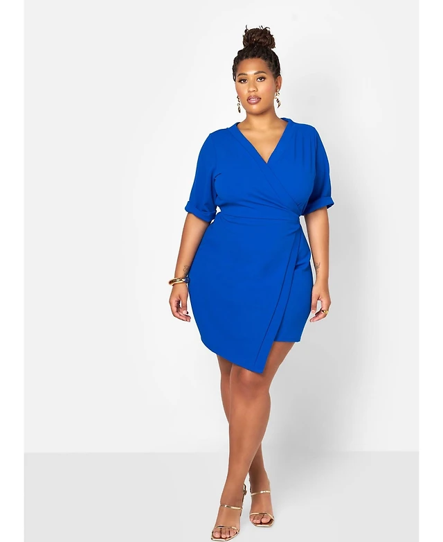 Connected Women's Collared Faux-Wrap Scuba Sheath Dress