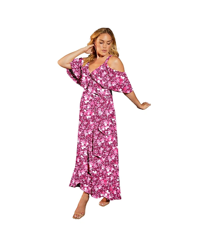 London Times Women's Faux-Wrap Ruffle-Hem Maxi Dress