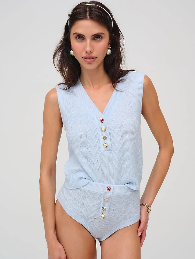 Italian Cool Feel Cashmere Wool V-neck Tank Top