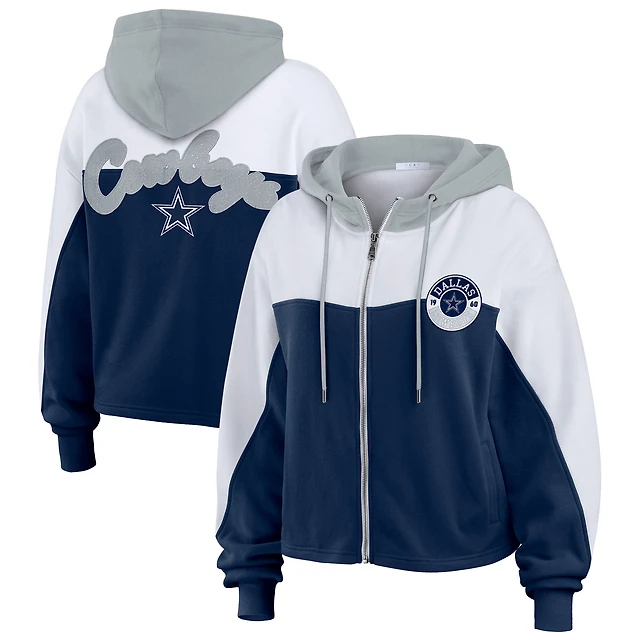 Women's WEAR by Erin Andrews Navy Dallas Cowboys Plus Size Color Block Full-Zip Hoodie