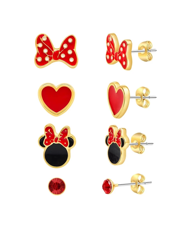 Disney Minnie Mouse Classic Fashion Stud Earring - Classic Minnie, Red/Gold - 4 pairs