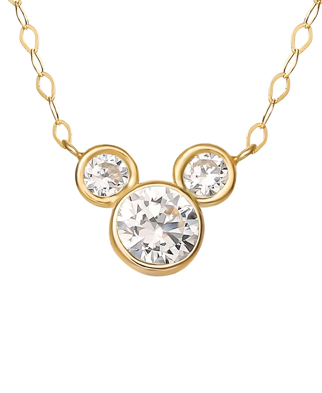 Disney Mickey Mouse Cubic Zirconia Birthstone Pendant Necklace with 15" Chain 14k Yellow Gold