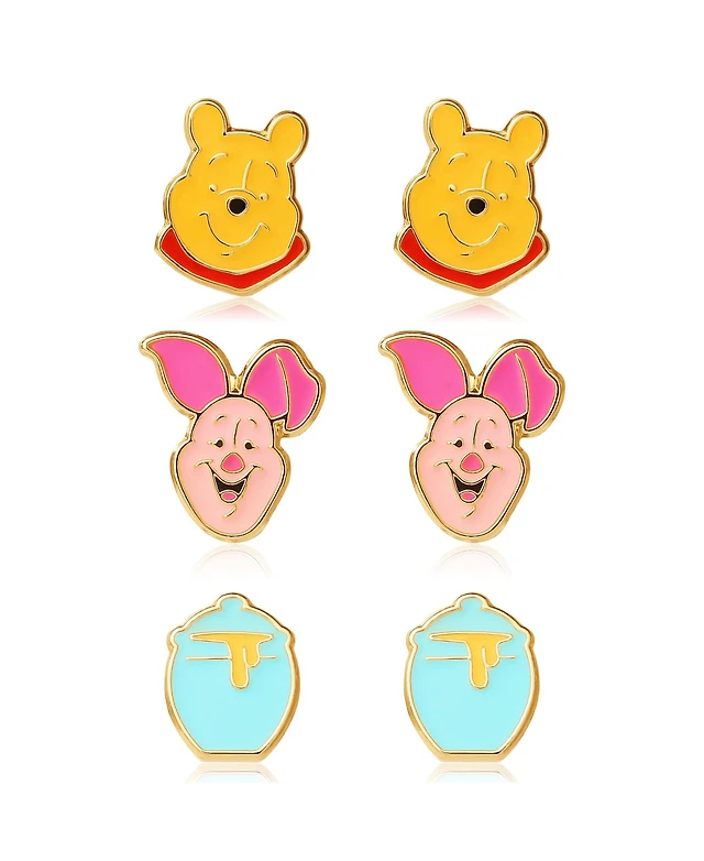 Disney Winnie the Pooh Gold Flash Plated Stud Earring Set, 3 Pairs