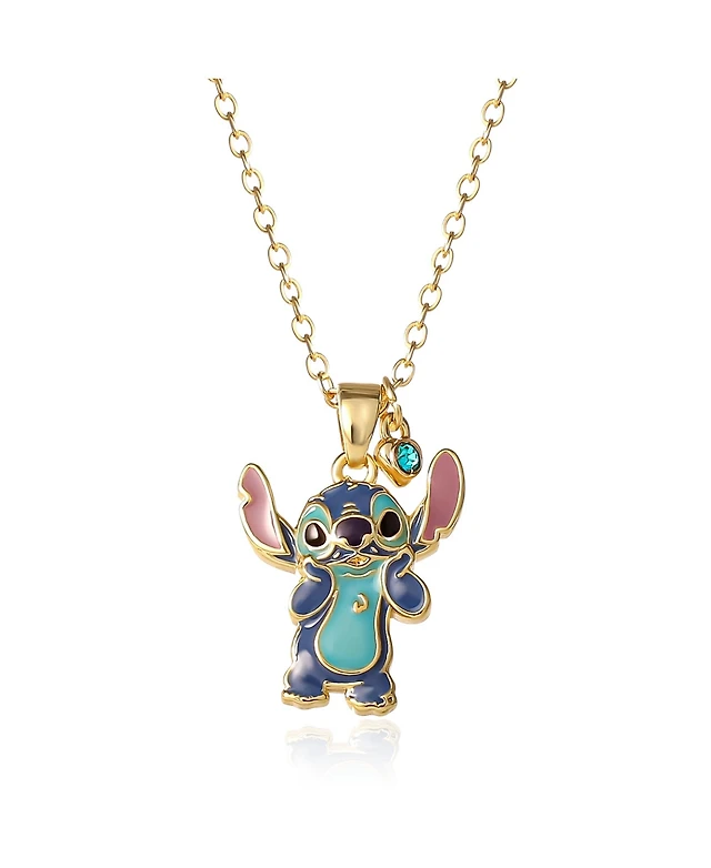 Disney Stitch 18kt Yellow Gold Flash Plated Enamel & Blue Crystal Standing Pendant
