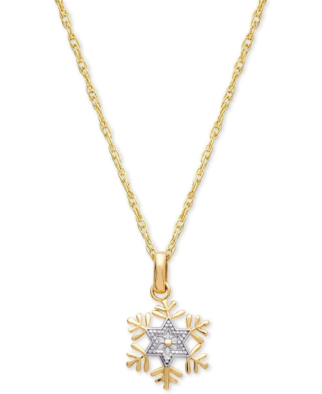Disney Children's Two-Tone Frozen Snowflake 15" Pendant Necklace in 14k Gold