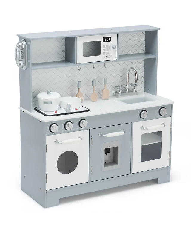 Pretend Play Kitchen Wooden Toy Set with Range Hood Real Sounds and Lights