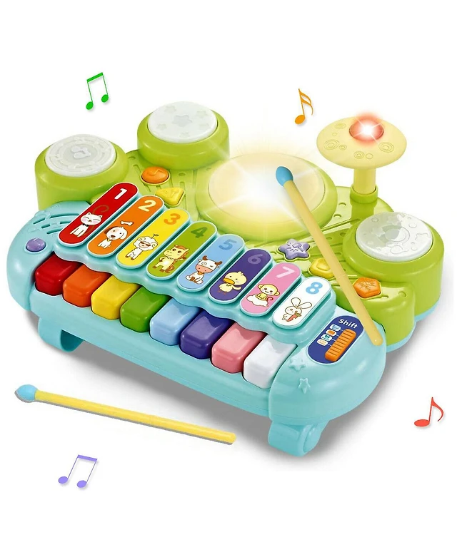 3-Piece Electric Kids Drum Set Musical Toy Gift w/Microphone Stool Pedal