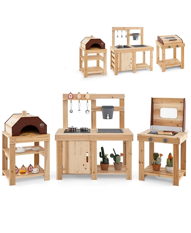 Mecale Wooden Kid's Corner Kitchen Playset with Stove for Toddlers