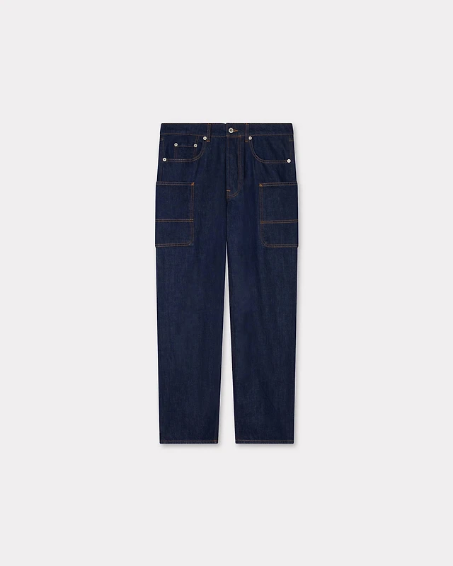 STAGGERED EMBROIDERED LOGO JEAN - Antique Indigo