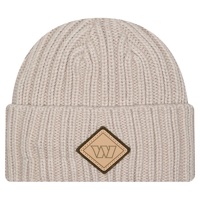 Men's New Era Light Beige Washington Commanders Logo Applique Cuffed Knit Hat