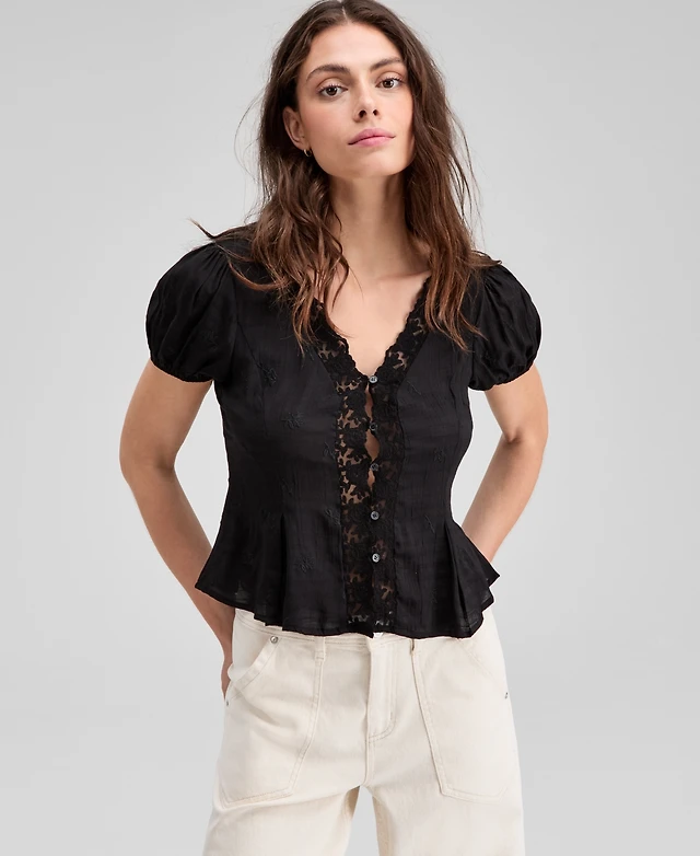 And Now This Women's Fitted Pleat-Detail Lace Blouse, Exclusively at Macy's