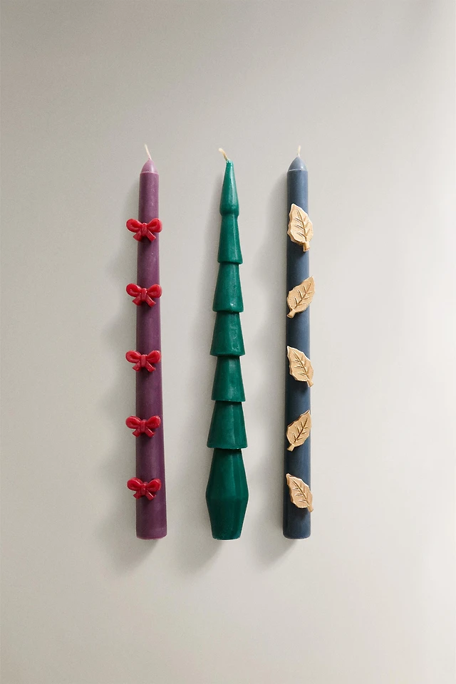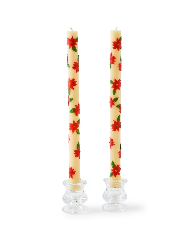 Mackenzie-Childs Poinsettia Dinner Candles, Set of 2