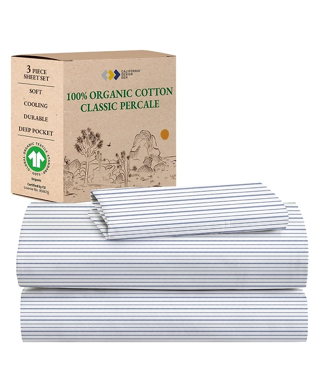 Cool Percale Fitted Sheet Only, 100% Organic Cotton, Fully Elasticized with Deep Pockets by California Design Den - Twin