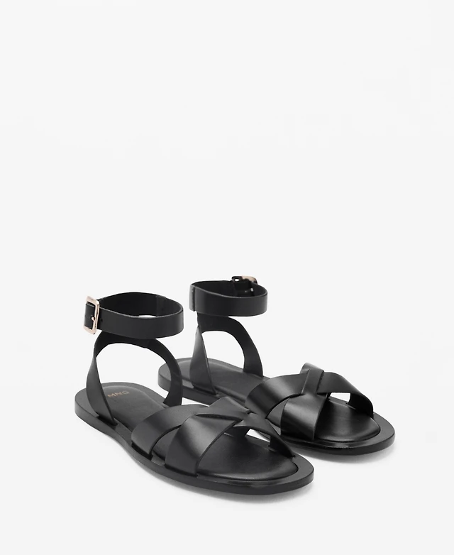 Leather sandals with intertwined strap