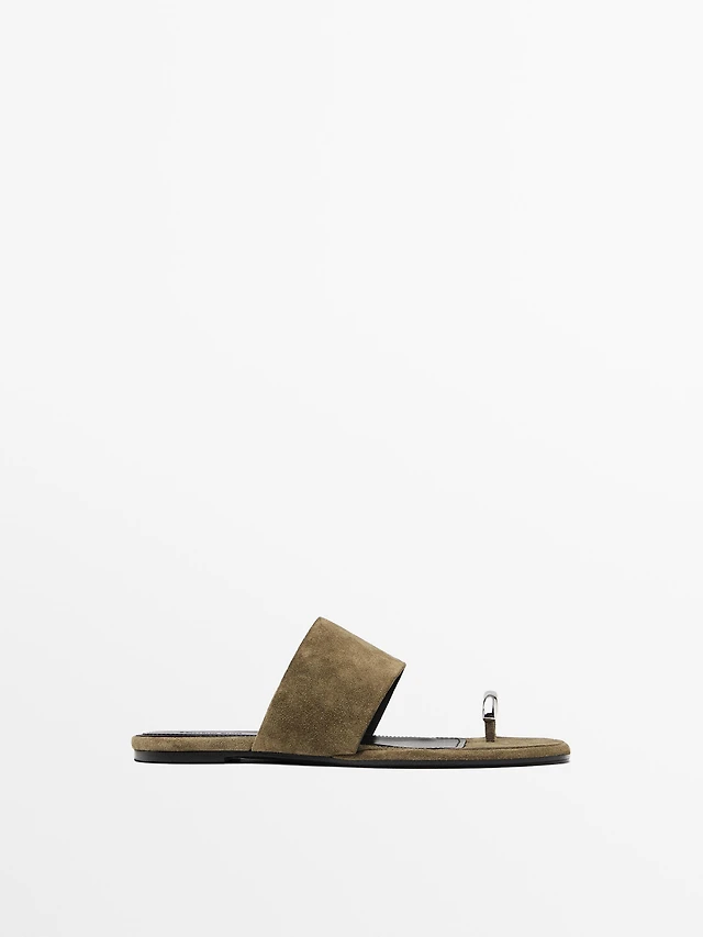 Arezzo Women's Siena Square Toe Ring Flat Sandals