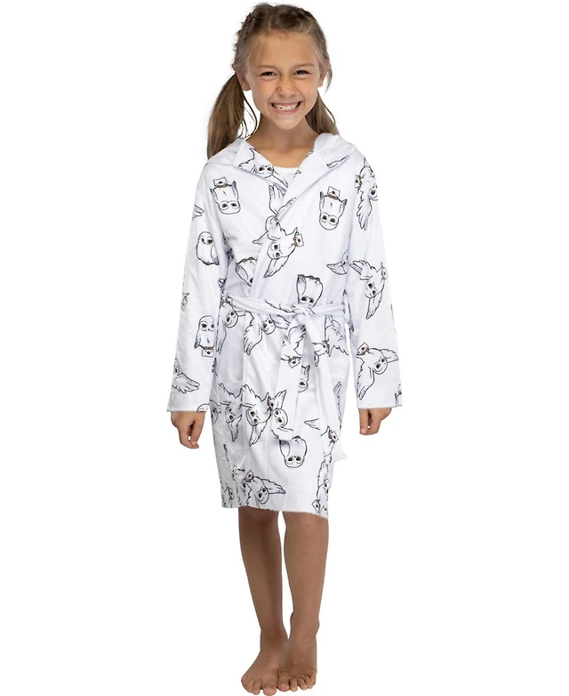 Harry Potter Girls Hedwig Owl All-Over Print Robe Soft Coverup Fleece Bathrobe