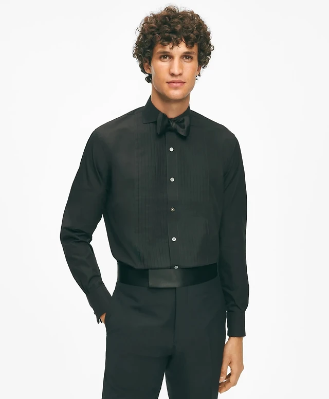 Black Fleece Pleated Londoner Collar Tuxedo Shirt Sea Island Cotton