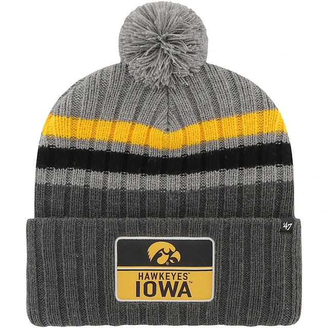 Men's '47 Charcoal Iowa Hawkeyes Stack Striped Cuffed Knit Hat with Pom