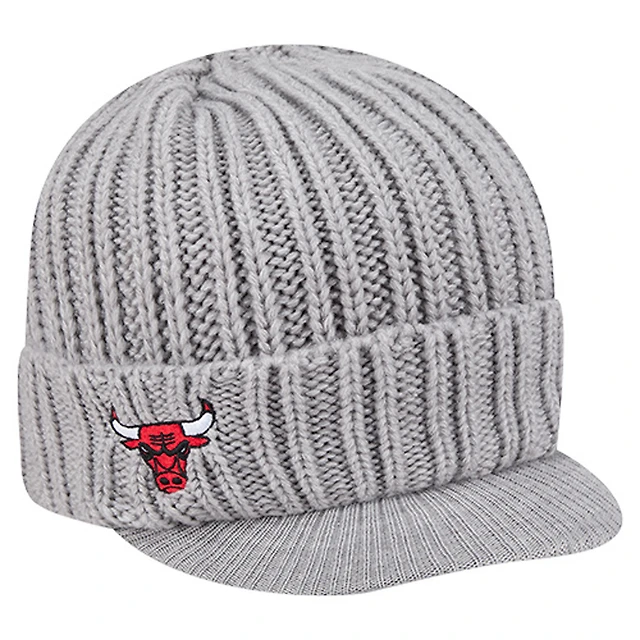 Men's New Era Heather Gray Chicago Bulls Cuffed Knit Hat with Visor