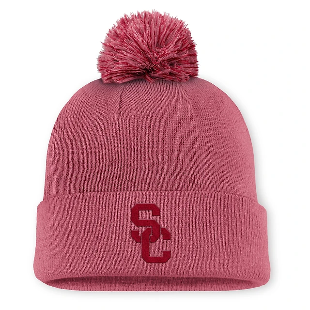 Men's Nike Pink USC Trojans Primetime Peak Campus Cuffed Knit Hat with Pom