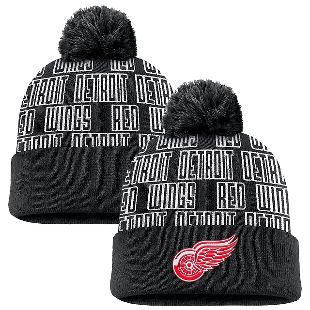 Men's Fanatics Black Detroit Red Wings Fundamental Empty Net Cuffed Knit Hat with Pom