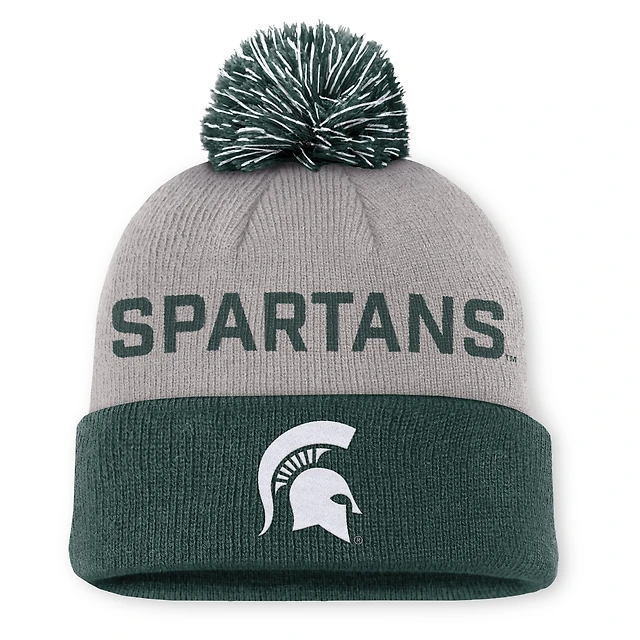 Men's Nike Gray/Green Michigan State Spartans Primetime Peak Cuffed Knit Hat with Pom