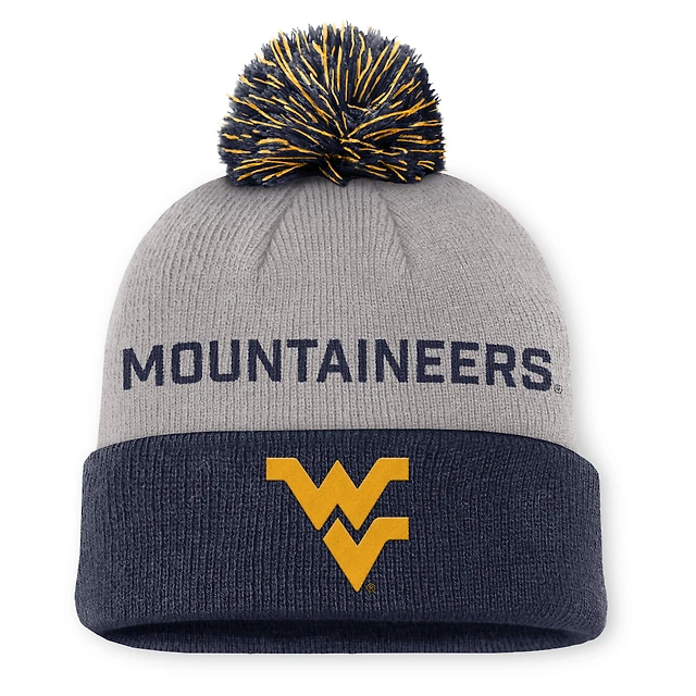 Men's Nike Gray/Navy West Virginia Mountaineers Primetime Peak Cuffed Knit Hat with Pom