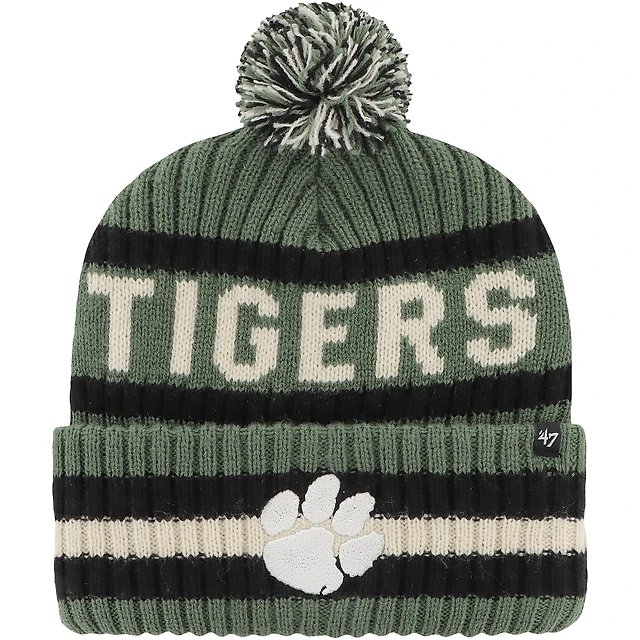 Men's '47 Green Clemson Tigers OHT Military Appreciation Bering Cuffed Knit Hat with Pom