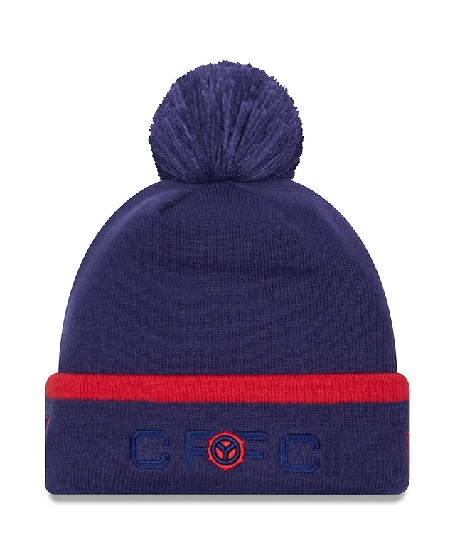 Men's New Era Navy Chicago Fire Wordmark Kick Off Cuffed Knit Hat with Pom