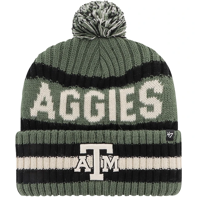 Men's '47 Green Texas A&M Aggies OHT Military Appreciation Bering Cuffed Knit Hat with Pom