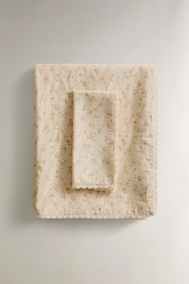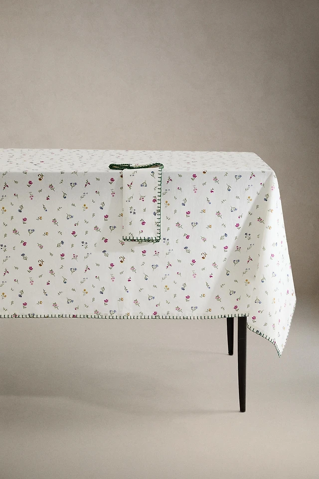 Cotton-linen floral-print tablecloth for 6 to 8 diners