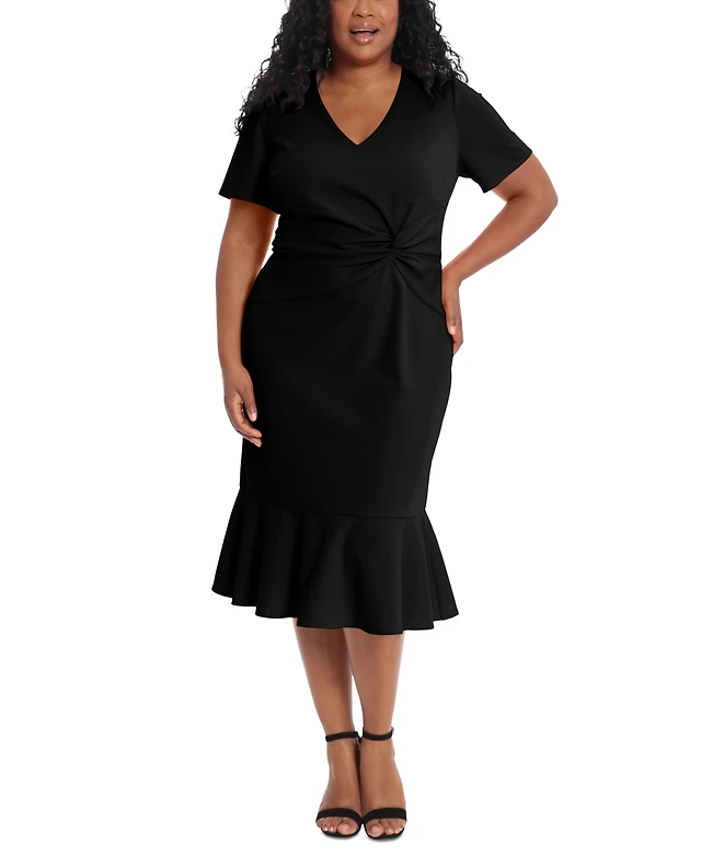 London Times Plus Size Side-Twist Flounce-Hem Sheath Dress
